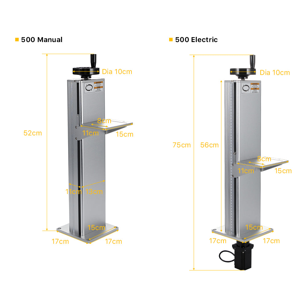 Cloudray Lifting Columns are designed to provide stable and precise height adjustment for laser marking and engraving machines. Available in both manual and electric versions, they allow users to easily adapt to different workpiece sizes and processing requirements. Featuring durable construction, smooth motion, and compatibility with multiple laser models, these lifting systems enhance flexibility, efficiency, and accuracy in every laser application.