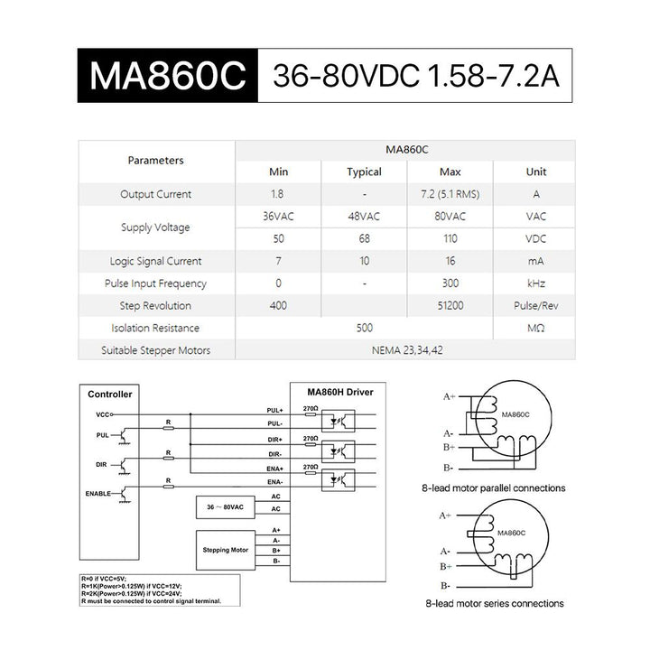 Cloudray MA860C 36-80VDC 1.58-7.2A Leadshinie 2 Phase Nema23/34 Stepper Motor Driver