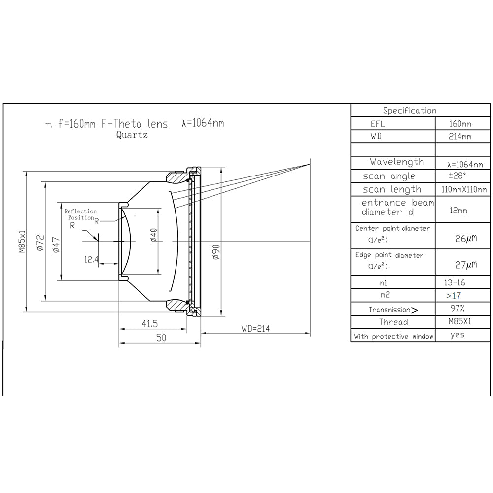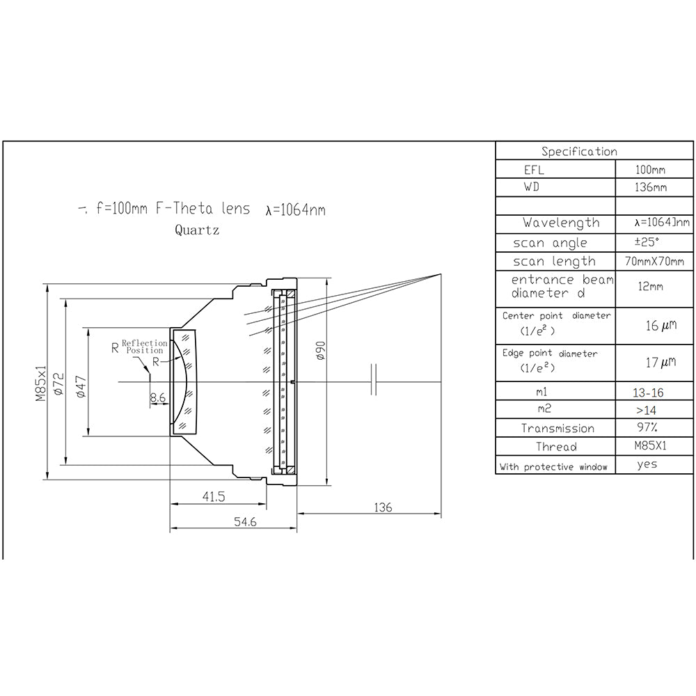 Cloudray-Quarz M85 Faserlaser F-Theta-Scan-Objektiv für 100-W-Faserlasergravierer