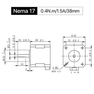 Cloudray 38 mm 0,4 Nm 1,5 A 2-Phasen-NEMA17-Schrittmotor mit offenem Regelkreis und 4-adrigem Kabel