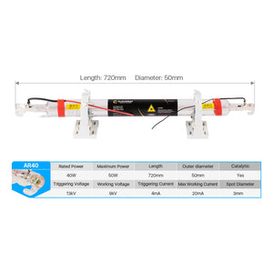 Cloudray 40W con el tubo del laser del vidrio del CO2 de la serie