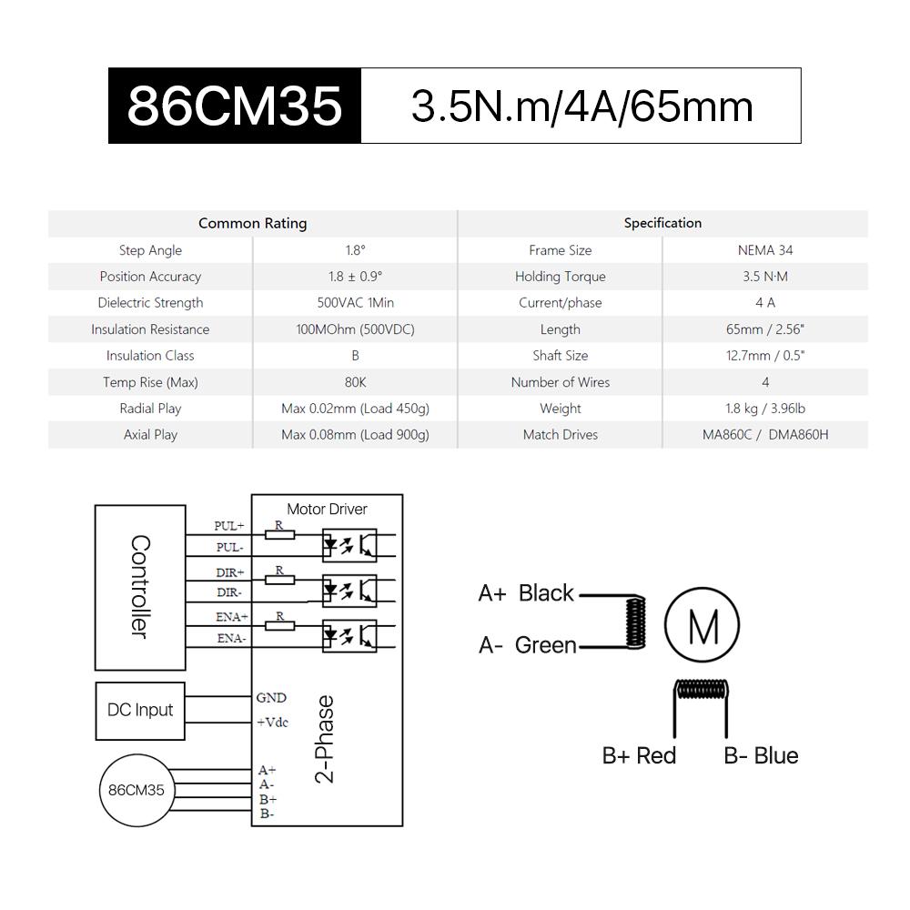 Motor paso a paso Cloudray 86CM35 de 65 mm, 3,5 Nm, 4 A, Leadshine, bifásico, Nema 34
