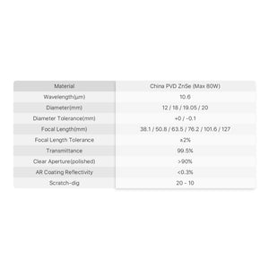 Cloudray CO2 láser China PVD ZnSe lente de enfoque