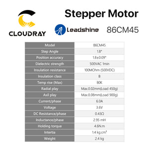 Motor paso a paso bifásico Nema34 Cloudray Leadshine 86CM45