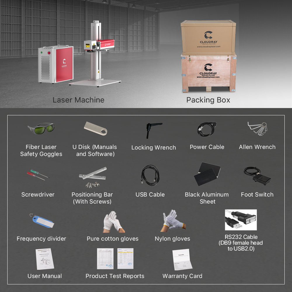 2. Diferentes tipos y configuraciones de máquinas. Las máquinas láser estarán equipadas con configuraciones únicas (solo para máquinas en www.cloudraylaser.com) con alta estabilidad y eficiencia de marcado. Permite la personalización de su máquina láser y la actualización de soluciones si es necesario.