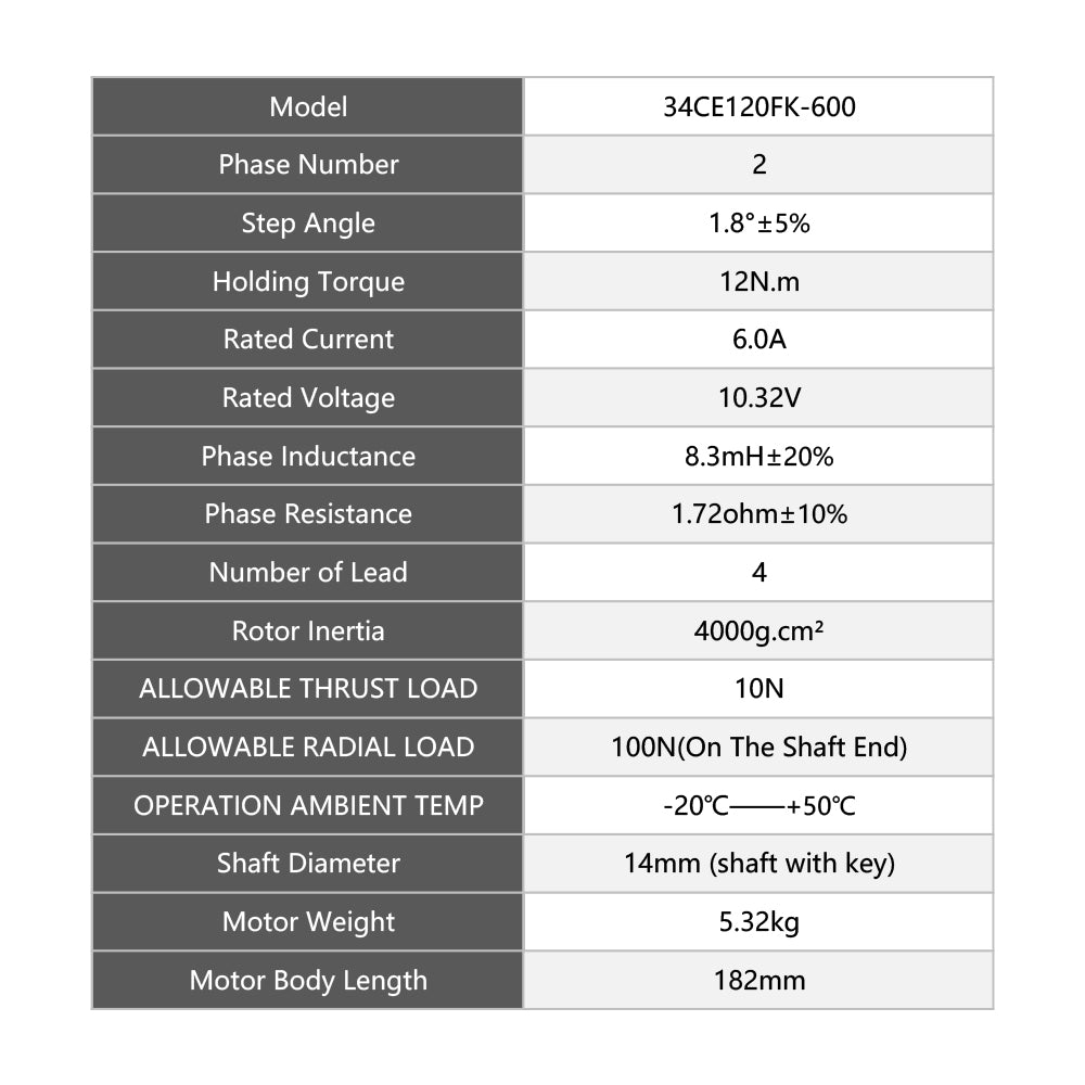 Cloudray 176mm 12N.m 6A 2 Phase Nema 34 Moteur à pas à boucle fermée