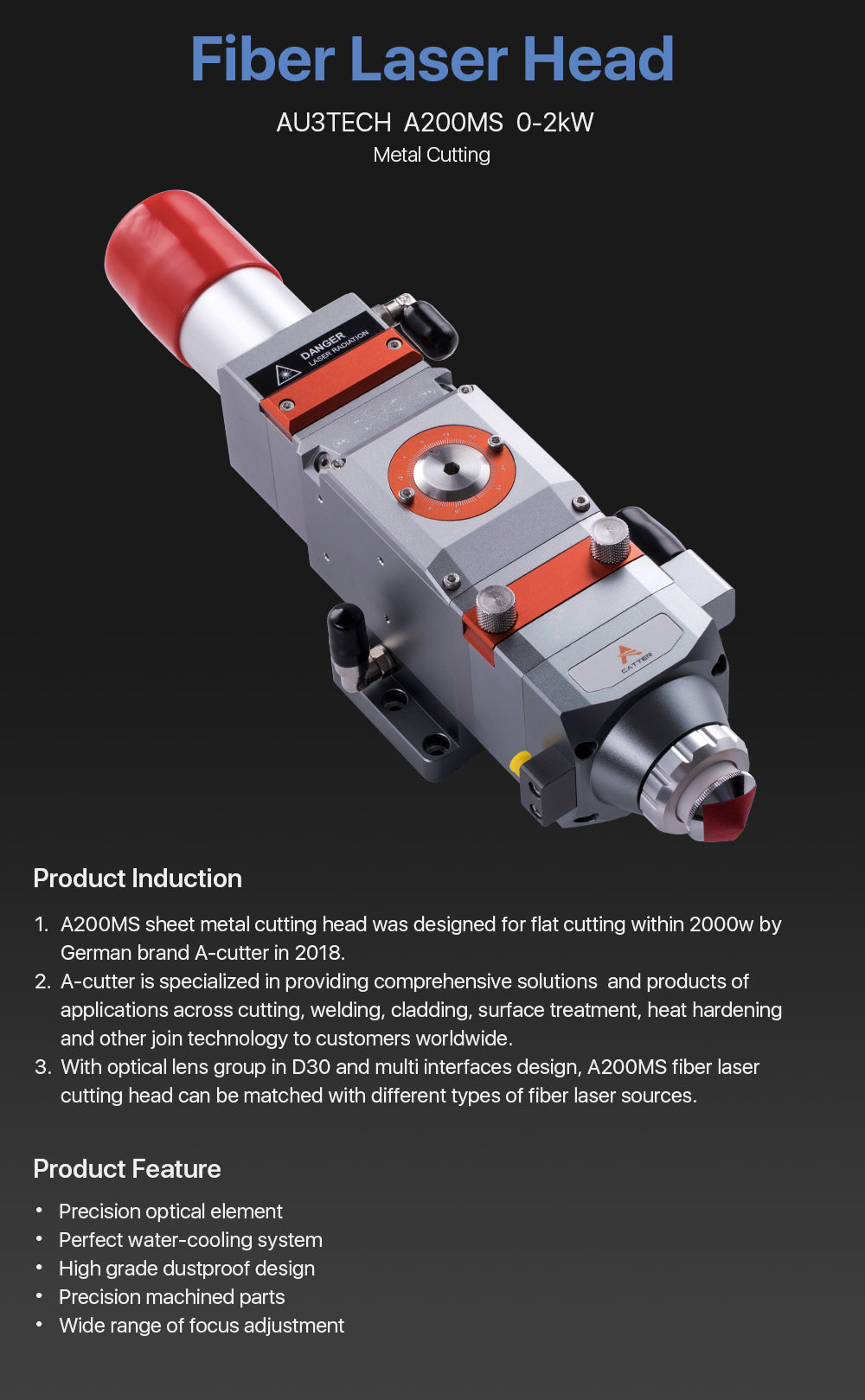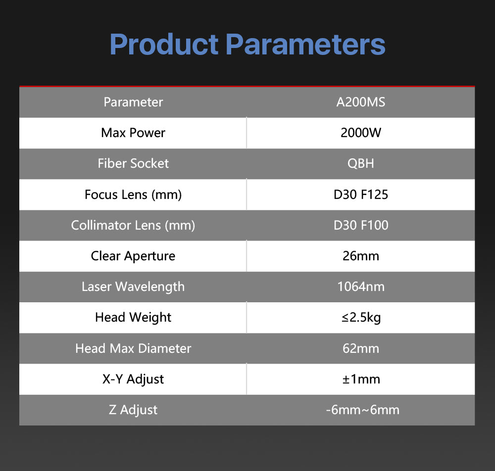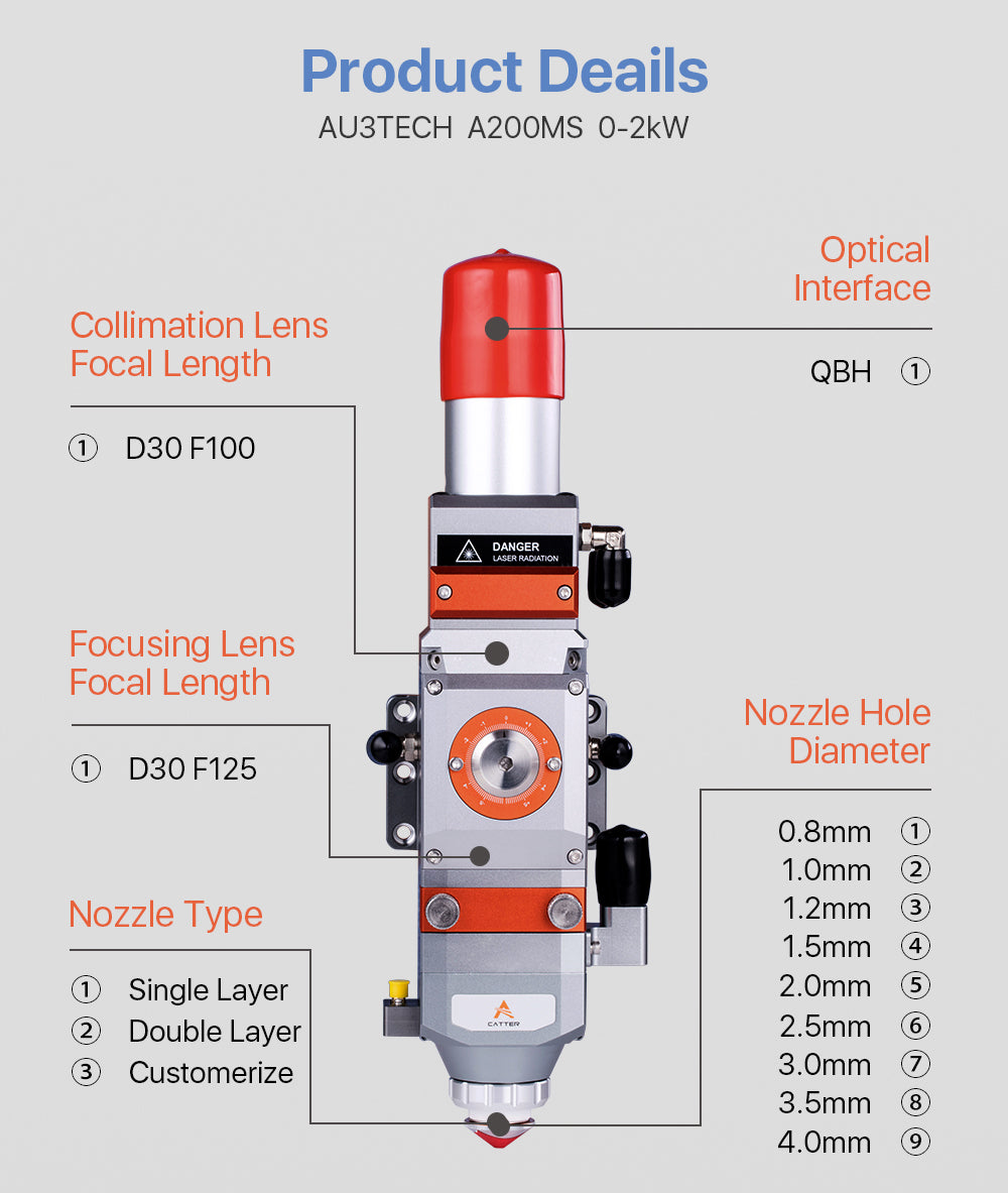 Tête de découpe laser à fibre à focalisation manuelle Cloudray 0-2 kW AU3TECH A200MS