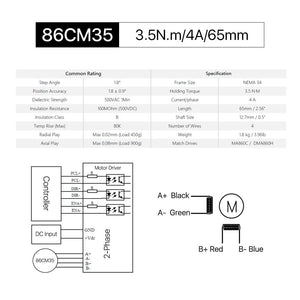 Cloudray 86CM35 65mm 3.5N.m 4A Leadshine 2 Phase Nema 34 Moteur à pas