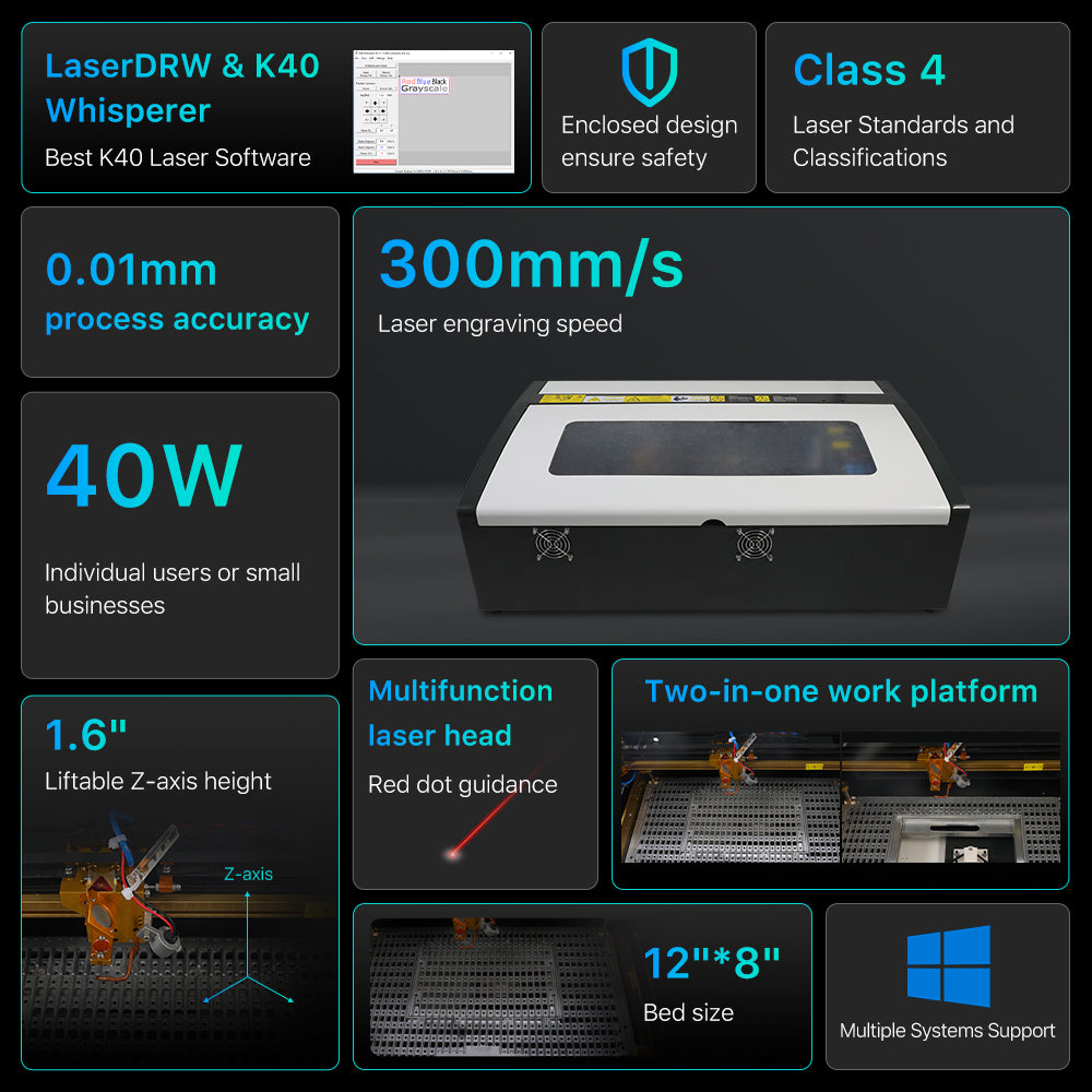 | AC 115V 60Hz | USB connect | Windows(32/64 bit) | LaserDRW k40 whisper |