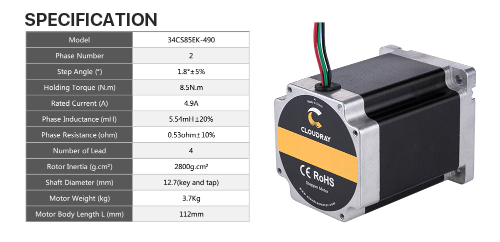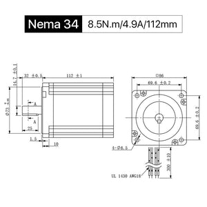 Motore passo-passo a circuito aperto Nema34 bifase Cloudray 112mm 8,5Nm 4,9A