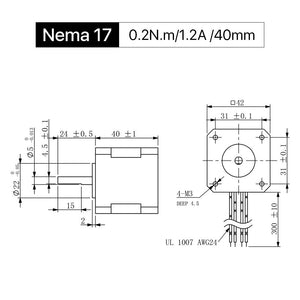 Cloudray 40mm 0.2N.m 1.2A 2 fase Nema17 motore passo passo ad anello aperto
