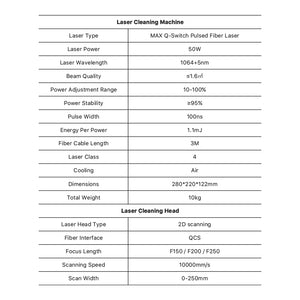 - Sistema facile da controllare e stabile: Focusing a luce rossa; Potenza laser max 300W; Sei modalità di pulizia; Regolare i parametri in base ai diversi materiali