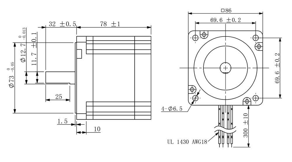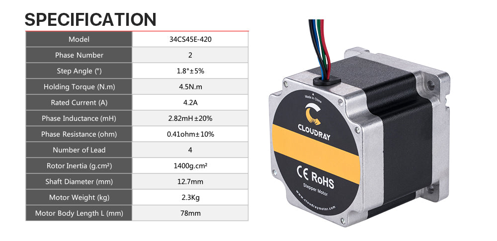 Motore passo-passo Cloudray 78mm 4,5Nm 4,2A 2 fasi Nema34 Open Loop con 4 fili albero 12,7mm