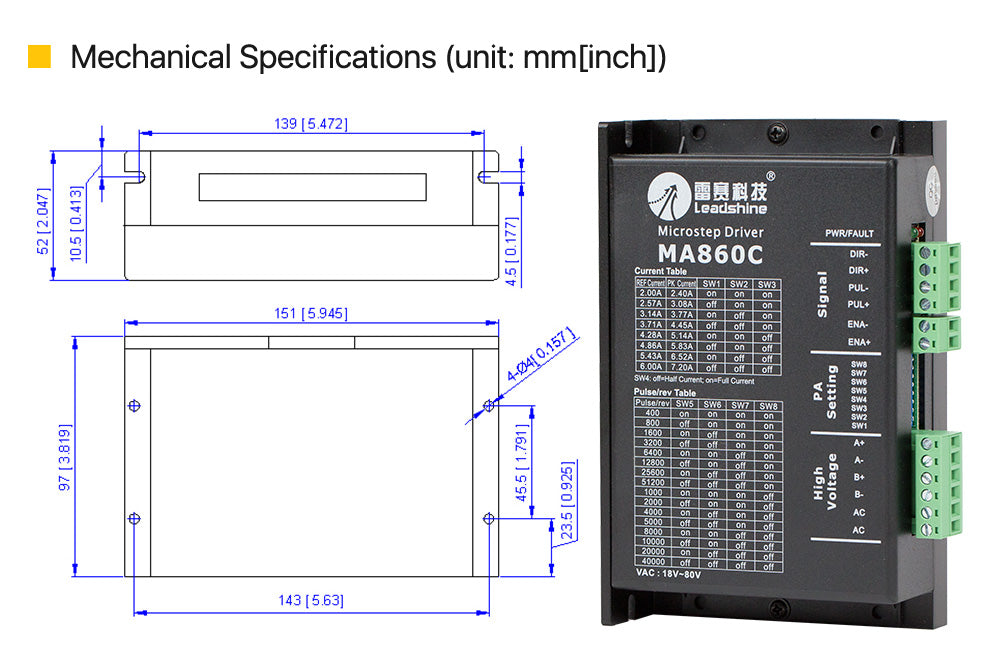 Cloudray MA860C 36-80VDC 1.58-7.2A Leadshinie 2 fasi Nema23/34 stepper motor driver