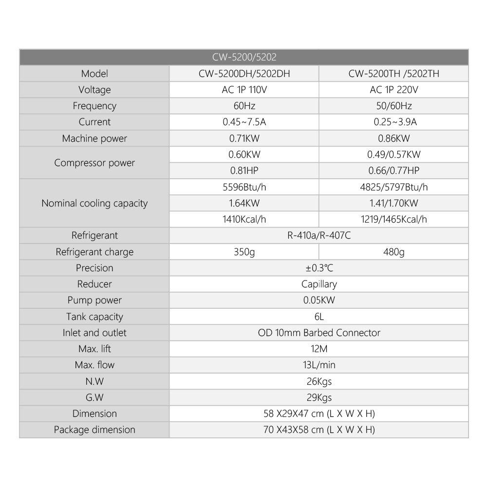 Chiller industriali Cloudray CW5200 & CW5202 per tubo laser CO2 150W