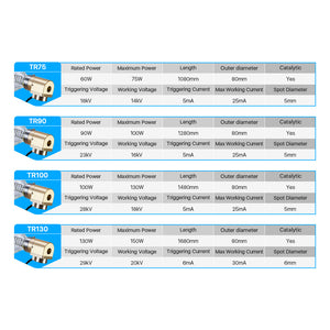 I tubi laser C02 delle serie TR75, TR90, TR100 e TR130 sono garantiti per 10 mesi.