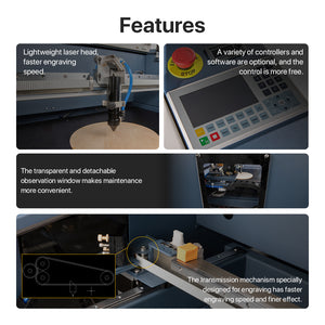 La velocità (fino a 800 mm/s) del L'incisore laser da 50-70 W garantisce maggiore efficienza rispetto a qualsiasi altra macchina a bassa potenza.