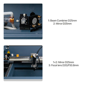 I raggi laser a infrarossi sono invisibili a occhio nudo. Il combinatore di raggi in linea incluso illumina con precisione il percorso del laser, eliminando potenziali pericoli dal laser e rendendo più facile la regolazione del percorso del laser.
