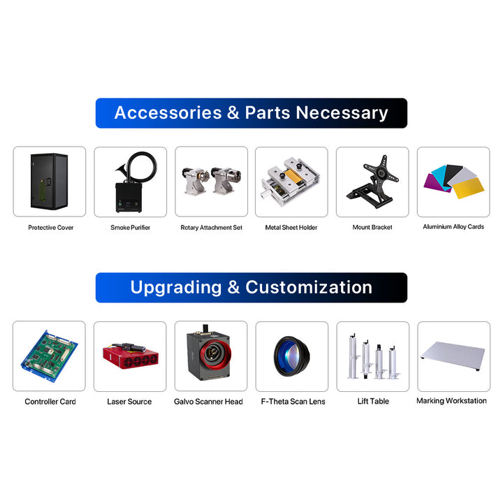 2. Different Machine Types and Configurations. The laser machines will be equipped with unique configurations (only for machines on www.cloudraylaser.com) which have high stability and marking efficiency. Support Customization of your laser machine and upgrading solutions if needed.
