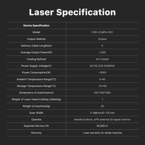 | Model | CL-200 | Laser Model | YDFLP-CL-200-1/5-A |