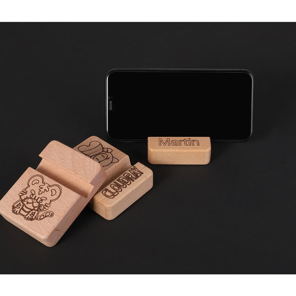 Материал для лазерной маркировки и гравировки Cloudray. Держатель для телефона из цельного дерева.