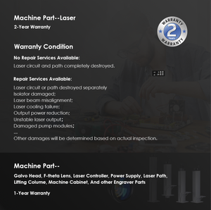 Cloudray Laser предоставляет 2-летнюю гарантию на лазерные граверы, которые продается на официальном сайте Cloudray Laser только первоначальному покупателю.