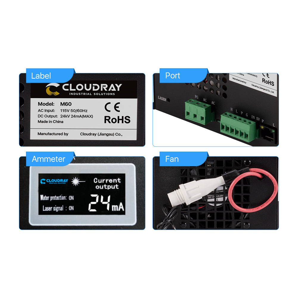 Домой Блок питания Cloudray 60W 115/230V MYJG CO2