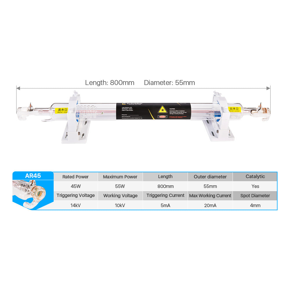 Домой Cloudray 45 Вт с серией CO2 стеклянная лазерная трубка