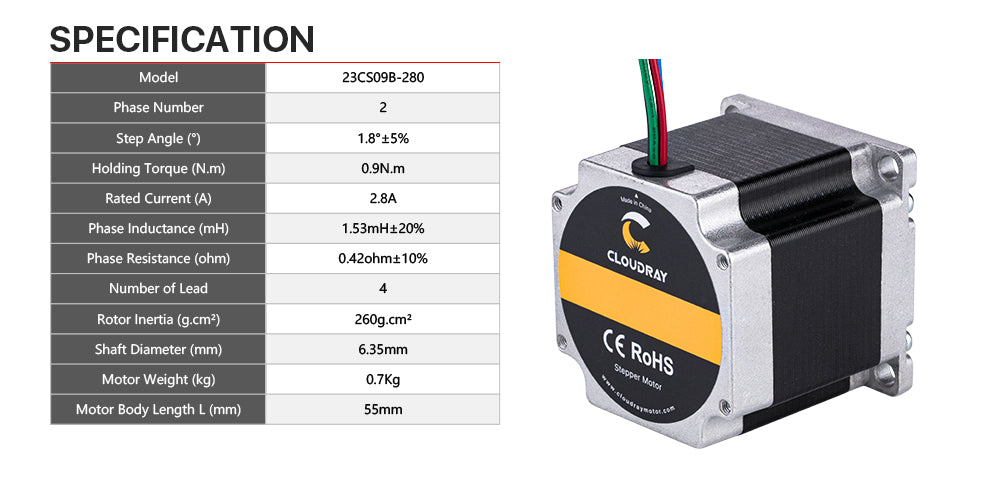 Cloudray 55 мм 0,9 Нм 2,8 А 2-фазный шаговый двигатель Nema23 с открытым контуром