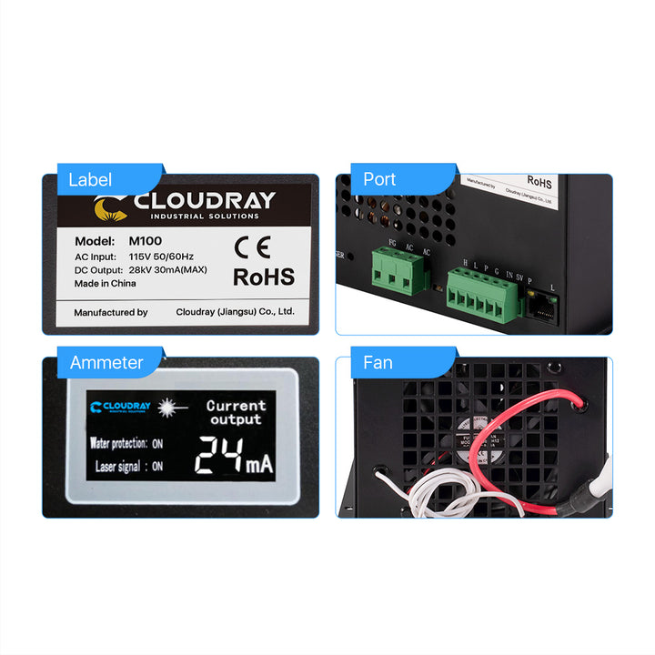 Комплект Cloudray для продажи 90 Вт CR серии модернизированная металлическая головка Co2 лазерная трубка + 115/230 В блок питания лазера